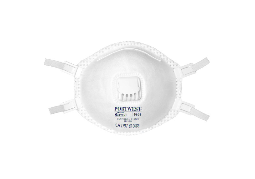 Comfortable cup shaped mask with an exhalation valve for lighter breathing resistance. Adjustable nose clip for optimised fit. All-round internal foam gasket for maximum comfort. Wide elastic bands.