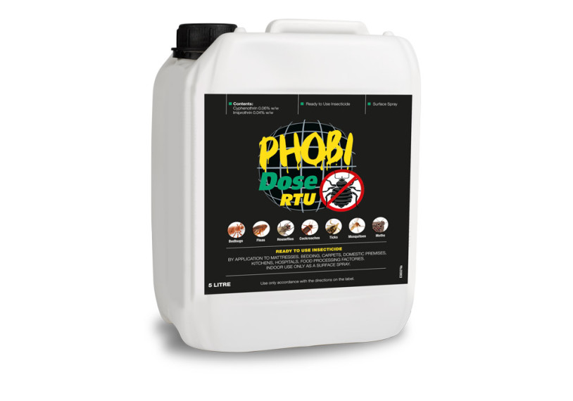 The highly effective combination of both imiprothrin and cyphenothrin in a ready to use formulation for use on mattresses and bedding.Phobi Dose RTU can also be used on houseflies, mosquitoes, cockroaches, fleas, ticks and moths
