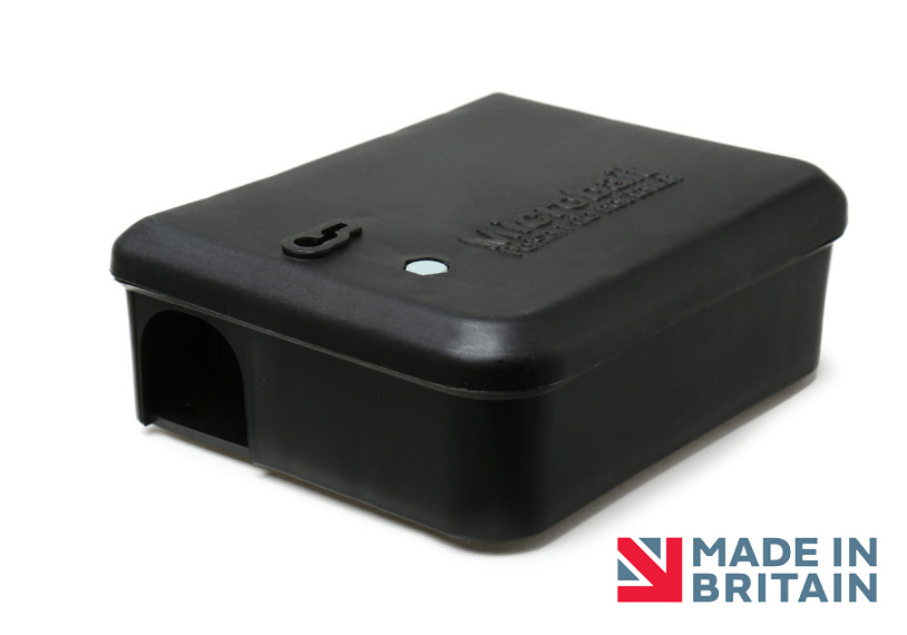 Quicklock Microbait - tamper resistant plastic mouse bait station Features a steel locking mechanism for consistent secure operation. Hinged side opening with top key entry offers excellent servicing speed – opens and re-locks in under 3 seconds using the new Versa key. Product features 2 block bait points. Insect monitor also available