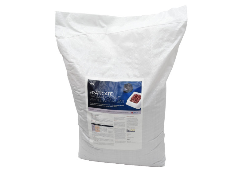 Eraticate Whole Wheat Bromadiolone 0.005% w/w & denatonium benzoate 0.001% w/w. Ready-for-use bait for the control of rats and mice in and around buildings, in open areas, waste dumps and in sewers. Eraticate Whole Wheat is made from high quality heat treated feed which prevents germination and increases the overall attractiveness of the bait to Rodents. Eraticate Whole Wheat is fortified with a unique aroma and taste enhancements which help to increase palatability while growth inhibiters prevent fungi and bacteria in damp conditions. Professional use only - Proof of competence will be required prior to delivery